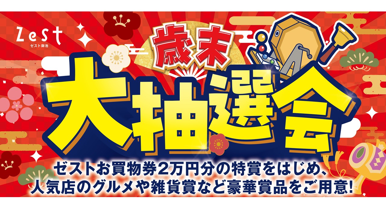 ✨歳末大抽選会✨ 12月26日(金)・27日(土)・28日(日)の3日間、歳末大抽選会を開催いたします!! 河原町広場 (招き猫前) 12:00~18:00 ゼストお買物券2万円分の特賞をはじめ、 人気店のグルメや雑貨賞…