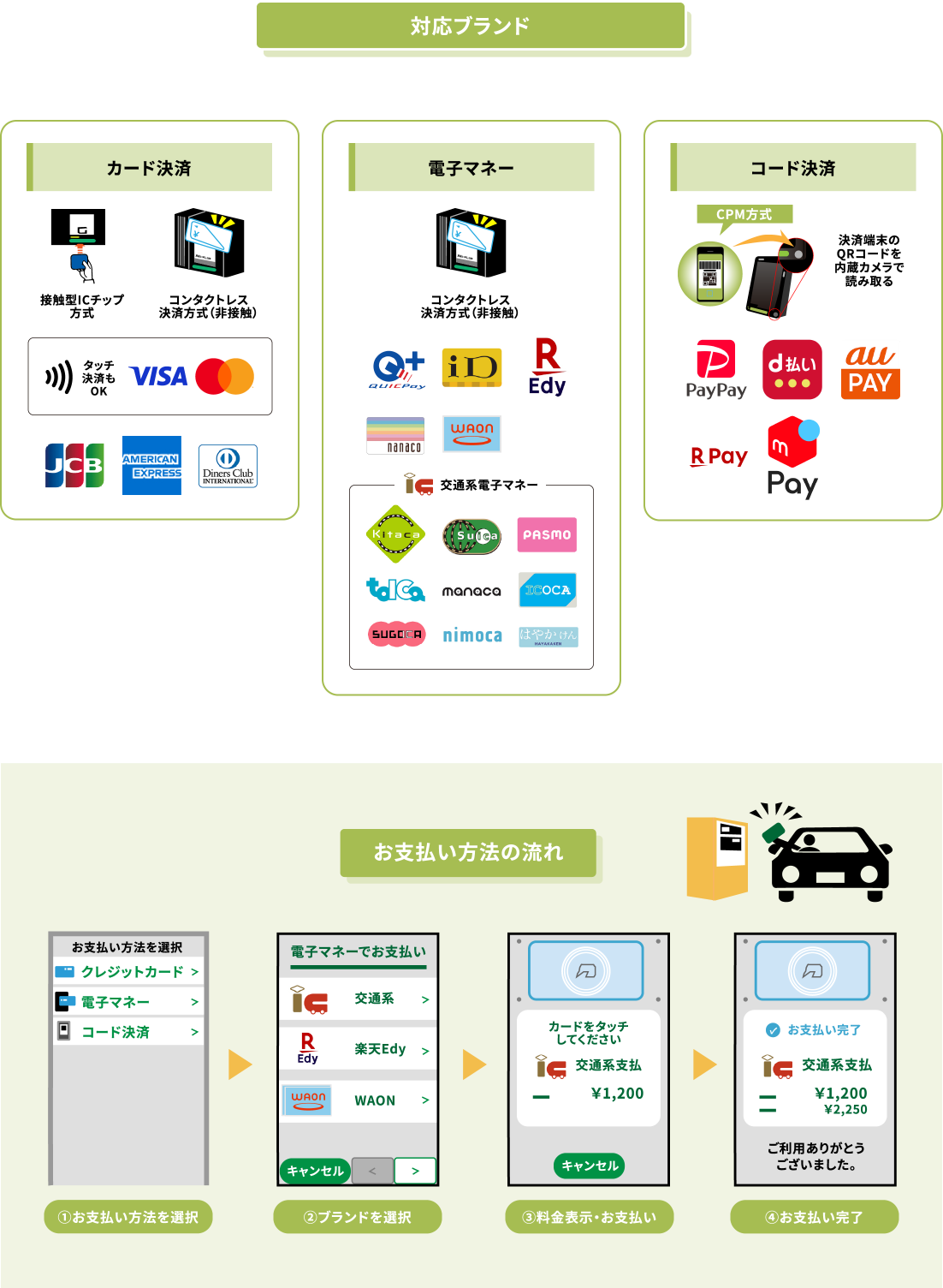 2024年8月1日から、精算機にてクレジットカード・電子マネーのご利用が可能となりました。