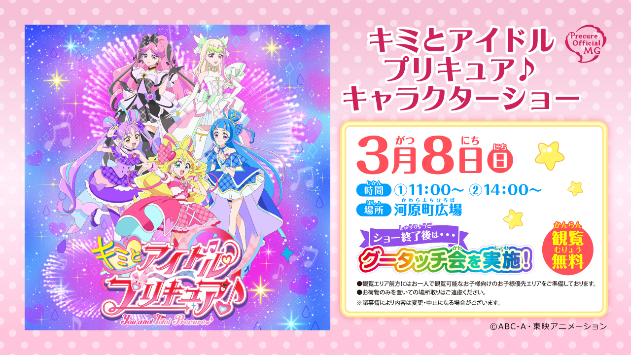 大人気のキミとアイドルプリキュア♪に近くで会えるよ! 歌とダンスのスペシャルショー ショー終了後には、グータッチ会を実施